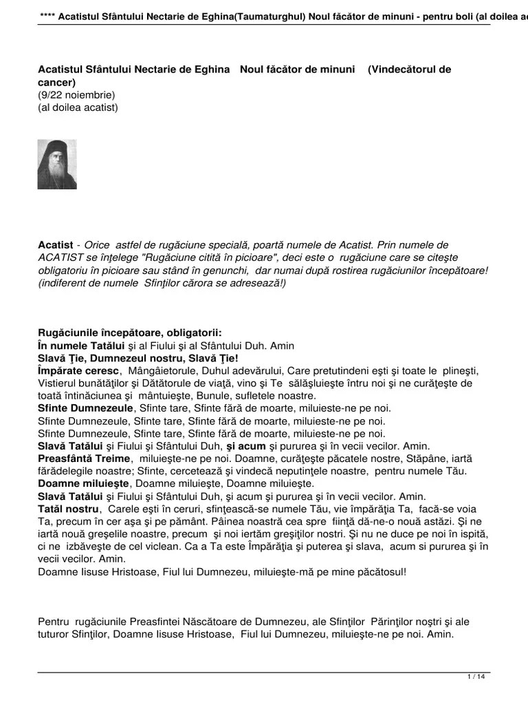 Biruință binecredincioșilor creștini asupra celui … Acatistul sfantului ioan rusul ( 27 mai ) rugaciunile incepatoare: Acatistul sfintei cuvioase parascheva (14 octombrie) rugaciunile incepatoare: Imparate ceresc, mangaietorule, duhul adevarului, care pretutindenea esti si toate le implinesti, vistierul bunatatilor si datatorule de. Acatistul sfantului fanurie (27 august / 9 septembrie) rugaciunile incepatoare: I n numele tatalui si al fiului si al sfantului duh, amin. In numele tatalui si al fiului si al sfantului duh, amin. Slava tie, dumnezeul nostru, slava tie ! I n numele tatalui si al fiului si al sfantului duh, amin. S lava tie, dumnezeul nostru, slava tie!