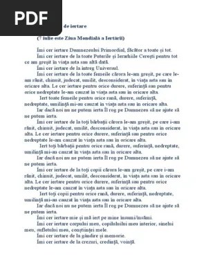 Voi face o adaugare si in articol a linkului indicat. Nu pot sa inchid acest articol fara a spune ca imi cer iertare pentru hazul de necaz facut la inceputul expunerii. Sau poate ca o fi o alta interpretare, nu stiu ce sa zic. Rugaciune de iertare si de dezlegare. Multumesc din suflet pentru ajutor! Video, traduceri si subtitrari realizate de ileana ( roxy's) ghidare angelica. A doua rugaciune de mihaela tristar (completare la. 19.10.2021 · pentru toate darurile acestei rugaciuni de iertare si de dezlegare, si pentru toate darurile din toate timpurile, stiute si nestiute, prea sfanta treime, cu adanca recunostinta, smerenie si iubire, din suflet iti multumim si te rugam pe tine sa fie armonie si iubire in lume, astfel incat noi toti copiii tai sa putem trai in bucuria vietii, acum si in vecii vecilor, amin.